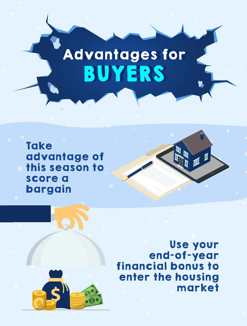 But in winter, especially in colder climates when everything is covered in snow, sellers and buyers alike can also take advantage of the season to score a good deal on real estate. Experts say that the idea that homes are very tough to sell or buy in the winter might be a myth. When temperatures drop, the market could be full of eager sellers and serious buyers who are both looking to score a cold, sweet deal.
